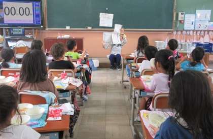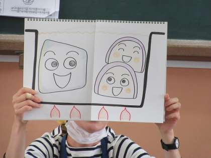給食の時間に栄養教諭の大杉先生が紙芝居を読みに来てくれました。