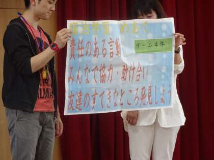 めあては「責任ある言動 みんなで協力・助け合い 友達のすてきなところ発見しよう」です。