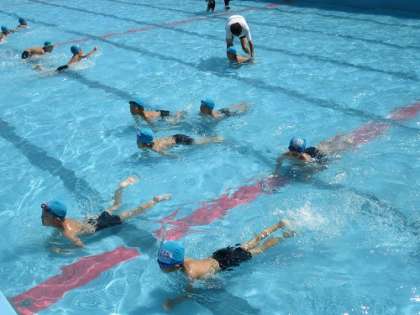 水の中で座ったり,ワニ歩きをしたり,ワニ歩きをしながらぶくぶく息を吐いたり,ばちゃばちゃバタ足をしたりしました。