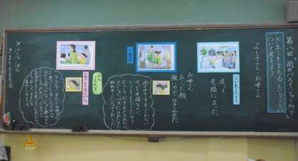雨宿りしながらバスを待っていた人たちの順番をぬかして,自分だけ先頭に並んだ主人公に対し,一緒にいたお母さんは厳しい顔つきで,バスに乗っても怒っている様子です。その時の主人公の気持ちを考えることで,自分勝手なことをして決まりを守らなかった主人公の行動に気づき,ルール違反はよくないし,人に迷惑をかけてしまうことを考えました。
