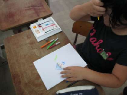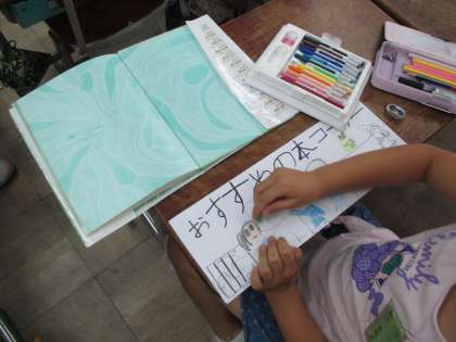 今日の中間休みは,雨が降って運動場が使用できなかったので,教室で会社(係)の仕事をしてすごしました。