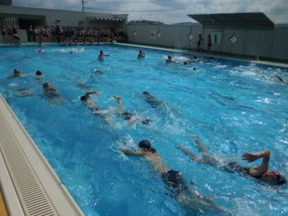 午前中の雨も午後には上がり,プール日和になりました。