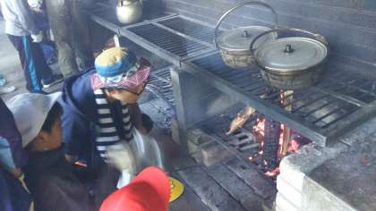 2つのかまどを合体させたり,薪を高く積み上げたり,試行錯誤で頑張っています!