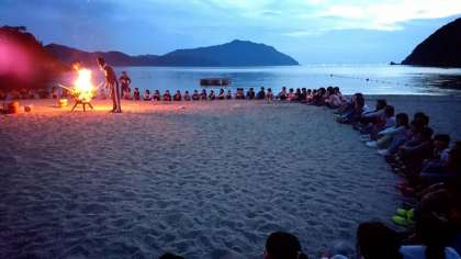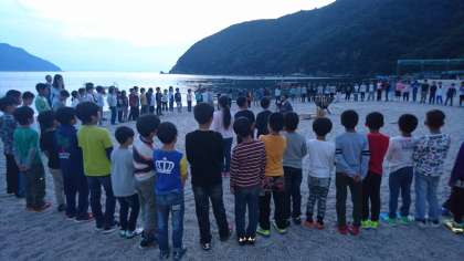 火の神よりいただいた火で,キャンプファイヤーが始まりました。