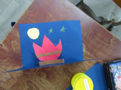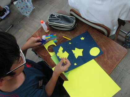 星空観察やキャンプファイヤーの思い出などをカードにしていました。