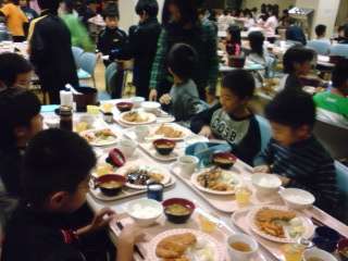 ご飯をおかわりするグループがたくさんあります。