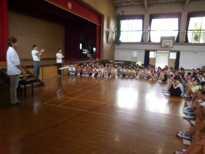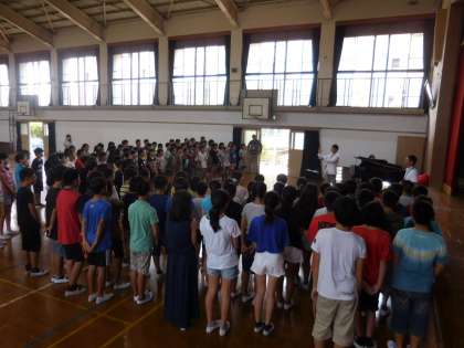 オーケストラの楽器の紹介や,校歌や「ビリーブ」の合唱練習を行いました。歌を歌う時には声だけでなく,歌詞に込められた意味を考えたり,表情を豊かに歌うことが上手歌う秘訣だと教えていただきました。