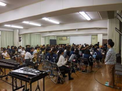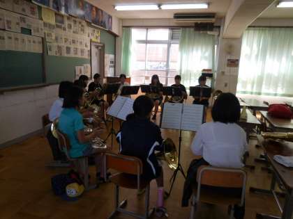 ブラスバンド部が来週の区民運動会にむけて,神川中学校の吹奏楽部と合同練習をしました。まずはパートに分かれて,音の出し方やブレスの仕方などの基本を教わりました。後半では一緒に合奏をさせてもらい,中学生の音色の美しさと迫力に驚いていました。今日教えていただいたことを生かして,本番も素敵な演奏ができるといいですね。