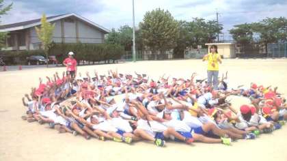 3年生の団体競技「台風の目」の前半部分の練習をしました。みんなの心を合わせて練習中です。