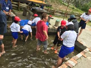 水は冷たいですが子どもたちは元気いっぱい!魚つかみに夢中です!