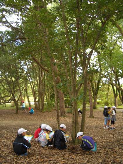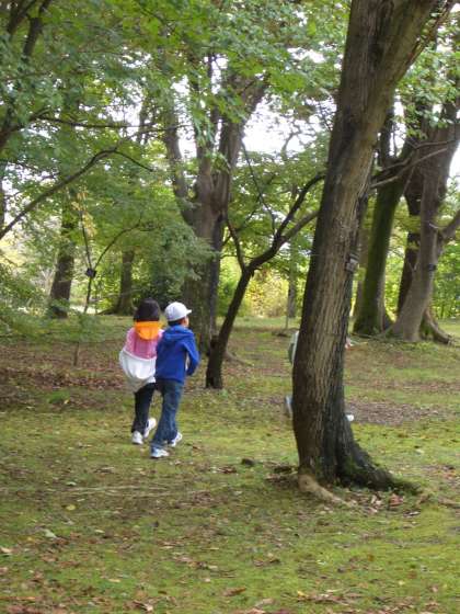 秋の森の中で,子どもたちのはしゃぐ声が響きました。