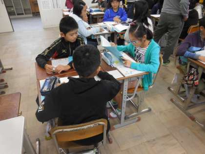 国語科で「海の命」の学習をしています。物語を読んで疑問に思ったところを中心に読み深めています。今日は個人のテーマについて自分の考えを友だちと交流し合うことができました。自由な雰囲気で話がすすみ,登場人物の「生き方」にせまることができました。