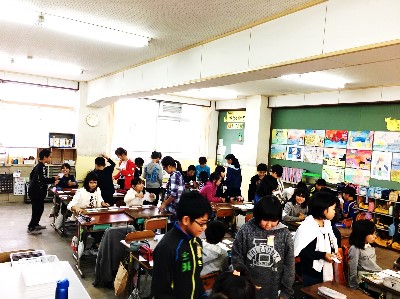 前後半で店番とお客に分かれて英語を話すのを楽しみました。