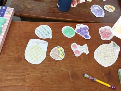 これまで班で果物屋さん,ペットショップなど分担をして画用紙に絵を描いて作っていました。
