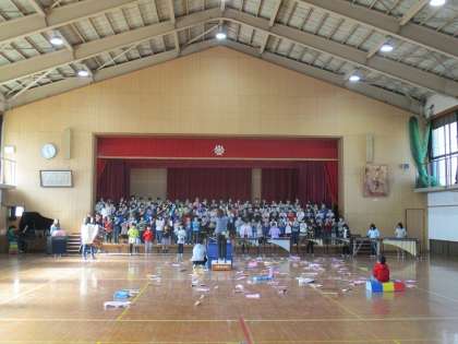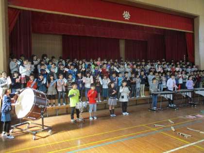 今日ははじめて,合奏を体育館で演奏しました。