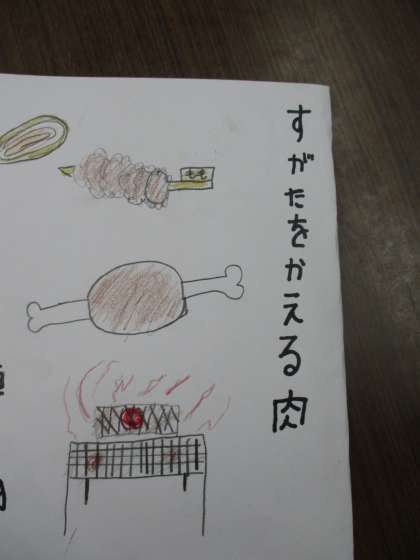 国語の「すがたをかえる大豆」で学んだことをいかして自分で選んだ本を元に,オリジナルの食べ物紹介カードをつくりました。身の回りにあるものがいったい何から作られたものなのか,どういった工程で変化していくのかを調べました。今まで知らなかったいろいろな発見があった様子でした。