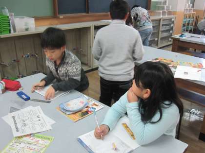 ノートに,見つけた実験器具を書いたり,土地や人体の模型を見たりしました。