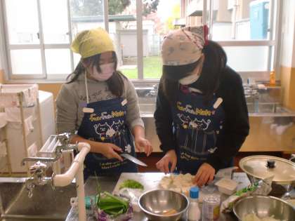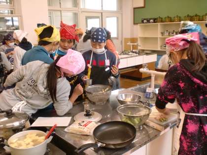 今回は1食分の献立を計画し,調理しました。それぞれの班で作る料理を決め,みんなで協力して活動することができました。どの班もオリジナリティーがあり,とてもおいしかったです。