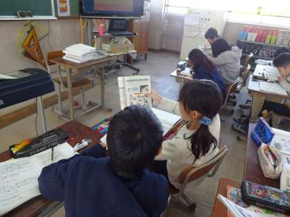 自分の考えを教科書の絵を示しながら話し合い,交流しました。
