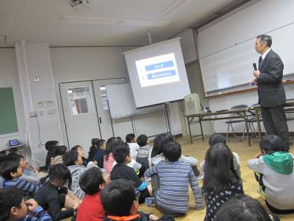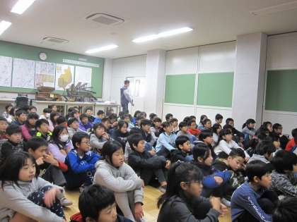 今日は,子どもたちにパンフレットを配布しています。