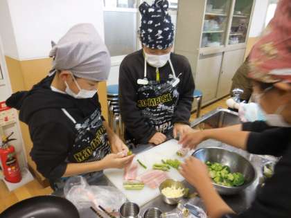 家庭科「まかせてね今日の食事」の学習で調理実習を行いました。