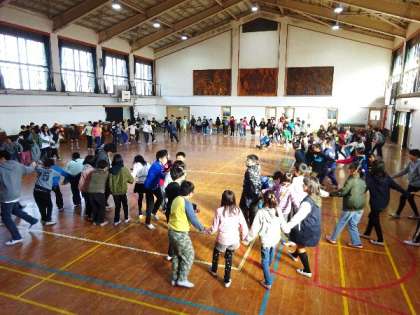 花背山の家のキャンドルファイヤーでマイムマイムを踊ります。