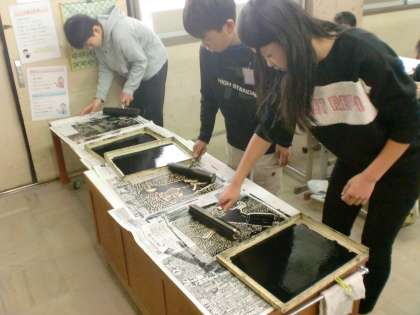 昨年から図画工作科で取り組んできた『木版画』がラストスパートです。