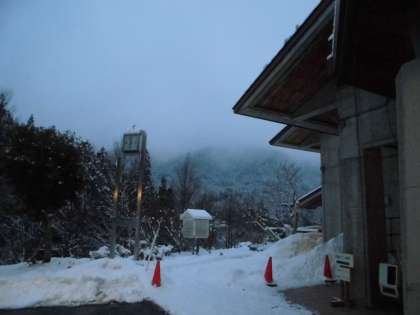 雪はやんでいますが,昨日の雪が凍っています。