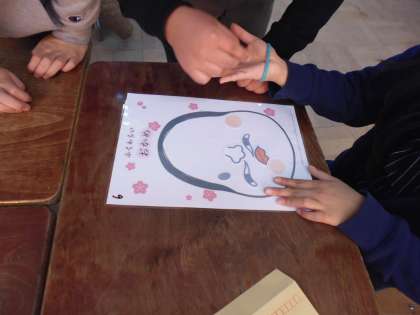新年の遊びで「福笑い」を英語で試してみました。目隠しをしている人に,眉や目や鼻や口などを英語で伝えます。その部品を右や左,上や下というように英語で動かす方向を言います。普段言い慣れている英単語は簡単に言えますが,慣れていないものは何回も言って慣れるようにしました。