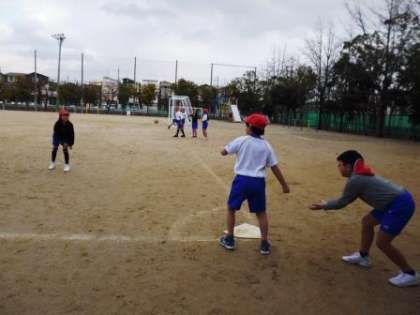 外は寒いですが,体育の時は元気にハンドベースボールをしています。野球のルールを知っている子がチームの友達にやさしく教えています。試合に勝つことよりも,チームワークよく試合を進め,ゲームに親しむことを第一のめあてにしています。回を重ねるごとにうまく点数も入るようになり,作戦を立てる姿が見られるようになっています。