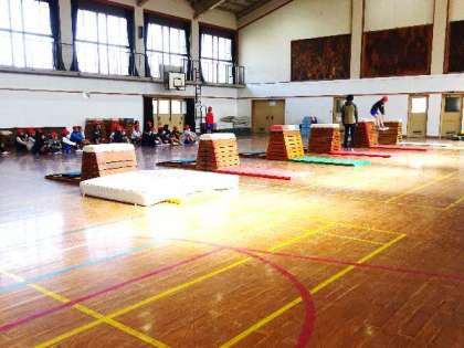 とび箱運動で,得意な人がお手本を示してくれました。