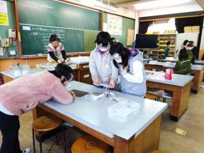 塩のとける様子を観察して,ホウ酸を観察しています。