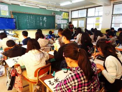 文字の外側だけが書いてある「かご字」というお手本をなぞって,そっくりに書く練習をしました。