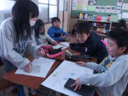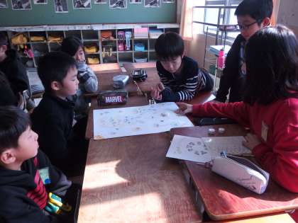 6年生が作成した台紙を使って,1〜6年生みんなで