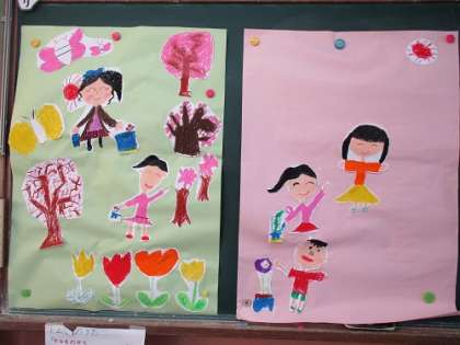 生活科の学習で,1年間をふりかえり季節の掲示を作成しています。少しずつ完成に向かっています。この掲示は,来年度の1年生の教室に貼ります。完成が楽しみです。