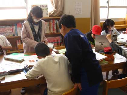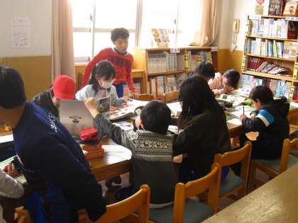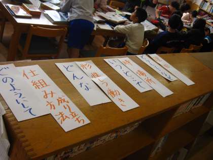 自分たちで調べたいテーマを決め,図書室の調べ学習の本を使って書いています。