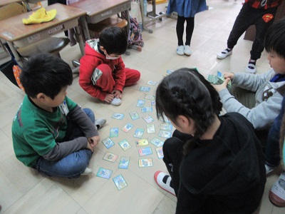 お昼休みには,カルタをしたりお手玉をしたり本を読んだり,教室の中で楽しく過ごすことができました。