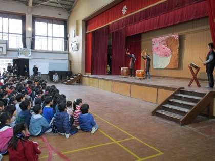 和太鼓部の発表会が中間休みにありました。みんなで鑑賞しました。和太鼓の迫力に圧倒されました。