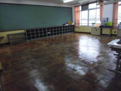 子どもたちが帰った後,ぞうきんがけをした後の教室の床にワックスを塗りました。ワックスの塗り立てはまだ乾いていませんが,明日の朝には気持ちの良い床になっているでしょう。子どもたちの驚き,喜ぶ顔が目に浮かびます。