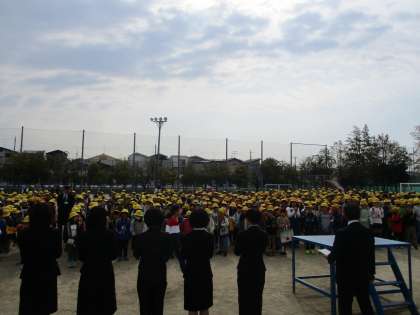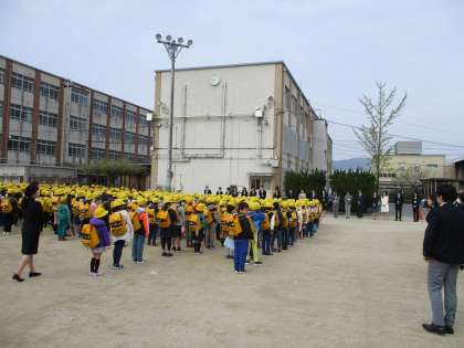 クラス発表の後,運動場で着任式と始業式が行われました。