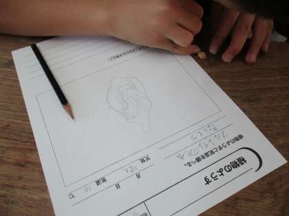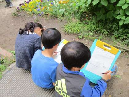 4月の末に植える太れいしのたねを観察しました。色や形,においなどをよく見てカードにまとめました。ちいさな種からどんなふうに育つのか楽しみです。