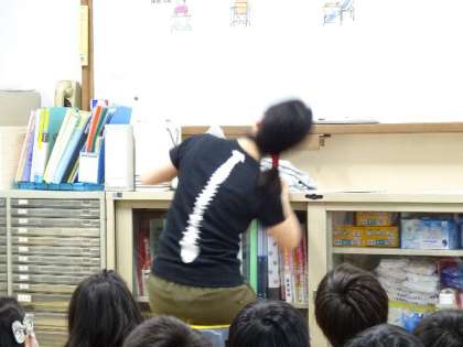 視力検査の前に,養護教諭の先生から姿勢についてのお話がありました。