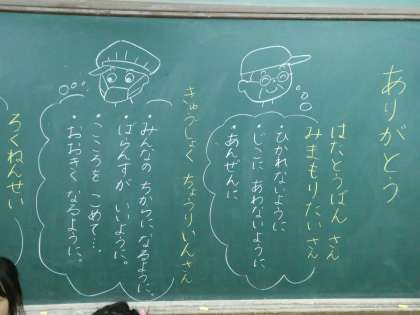 旗当番さんや見守り隊の方々,給食調理員さんや6年生…