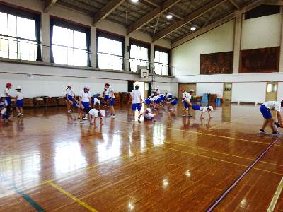ふえおにをしたり,手押し車をしたりして体力をつけながら,仲間との楽しい交流をしています。