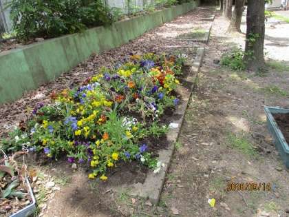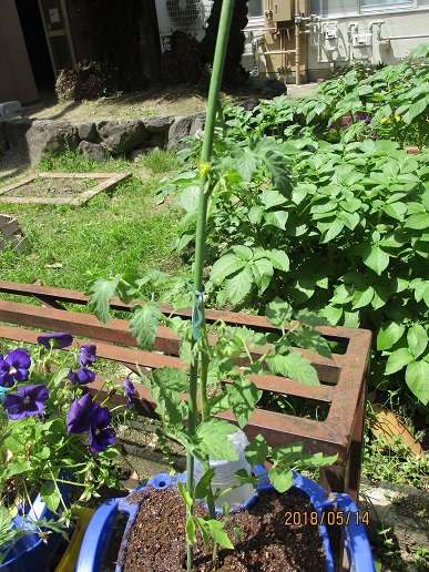 自分の鉢で育てていたパンジーは,南校舎の裏の花壇に植え替えをしました。みんなのパンジーが集まってきれいなパンジー畑になっています。こちらもまだまだお世話をがんばっていこうと思います。自分のはちには,ミニトマトが植わっています。