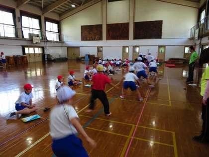反復横跳び,ソフトボール投げなどまだ実施していないスポーツテストを行いました。