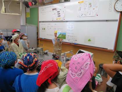 はじめ,家庭科室で家庭科室探検・コンロの使い方を知りました。