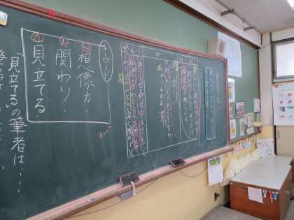まずは「見立てる」で筆者の考えの中心を捉えた後,100字前後でまとめることができました。