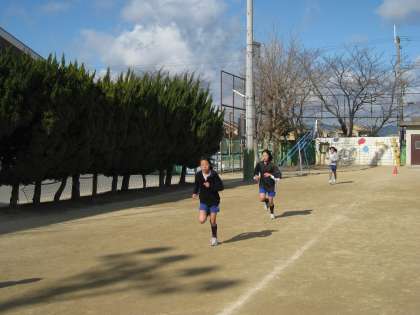 朝は軽めの調整で,中には4年生の姿も見られます。6年生の頑張る姿に刺激されたのが,走ることを楽しんでいる様子が印象的です。