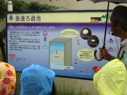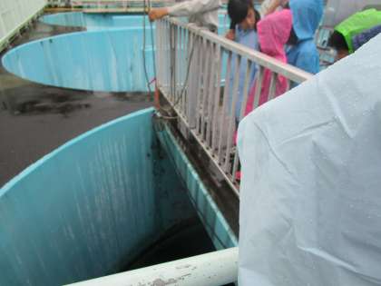 きれいになり,においも無くなった水を,「まりも」でろ過して消毒した後,桂川へと放流します。「最初と全然違うなあ。」16時間で水をきれいにする技術に,すっかり感心していました。